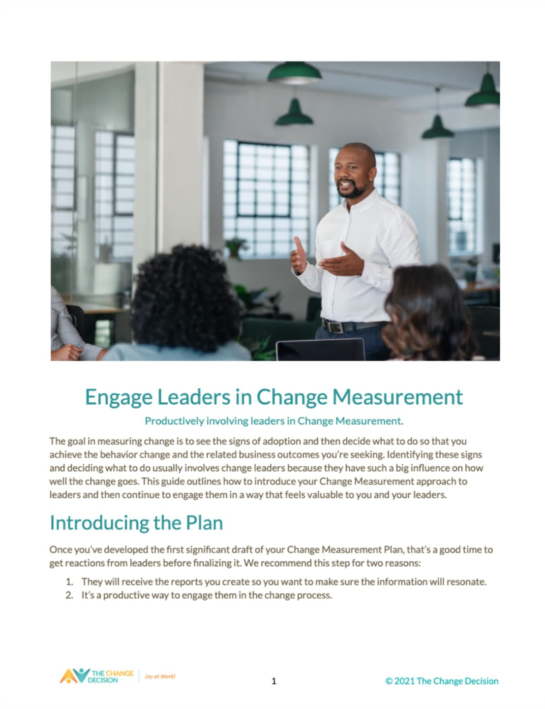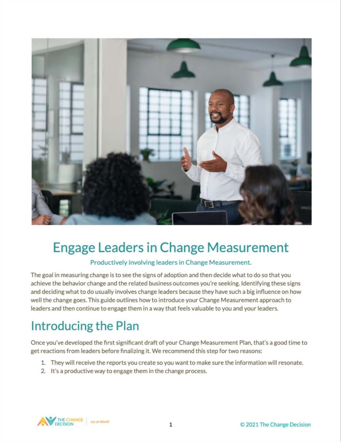 Engaging a leader in Change Measurement works best when you connect your approach to the decisions they're facing and the risks they're watching. This five-page guide shows you how, from the first conversation through ongoing engagement.