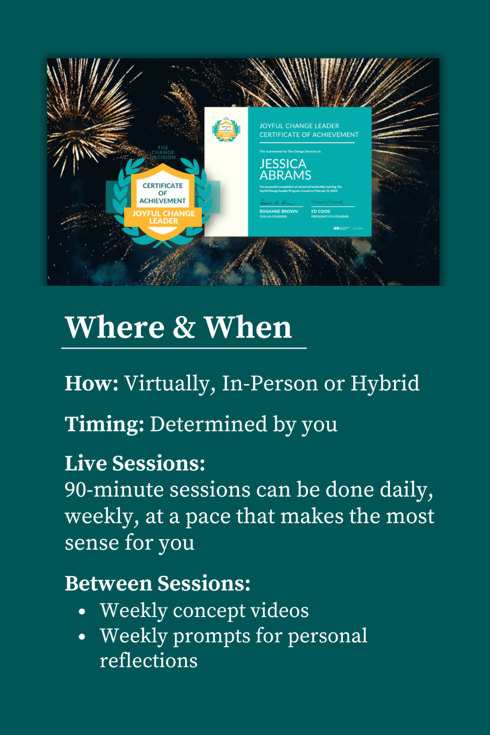 In this customizable experience designed specifically for leaders, discover how to deliver Change Management strategies rooted in positive psychology and inspire with authenticity as you're leading in an ever-changing workplace.